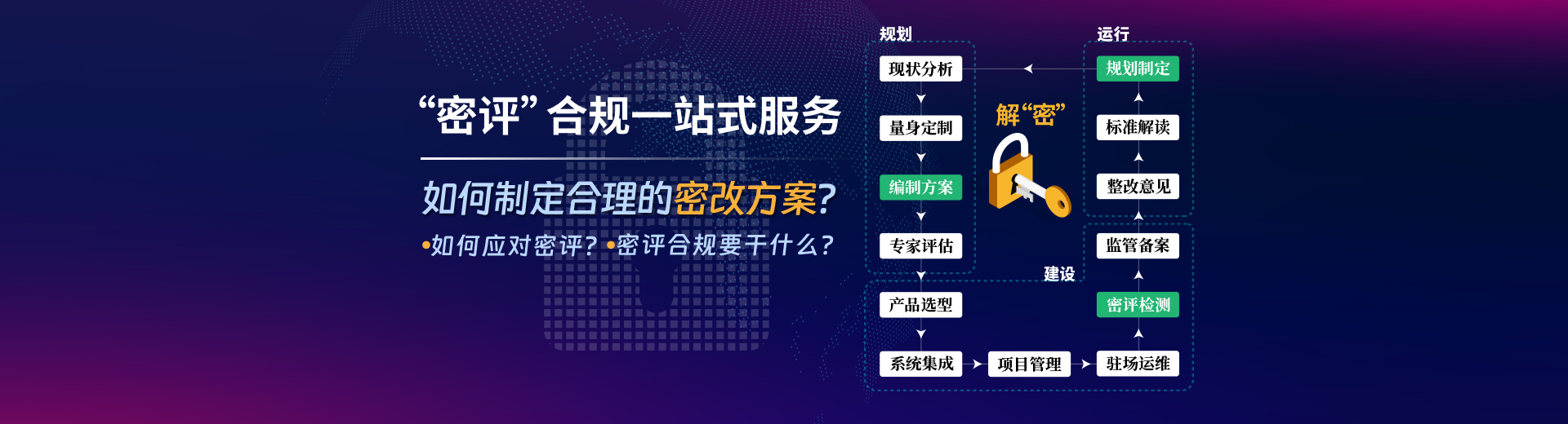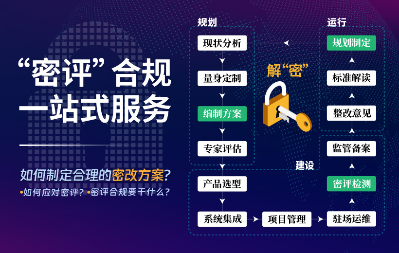 為客戶提供個(gè)性化、專業(yè)性的,符合相關(guān)規(guī)定要求的,全流程——密碼技術(shù)解決方案。